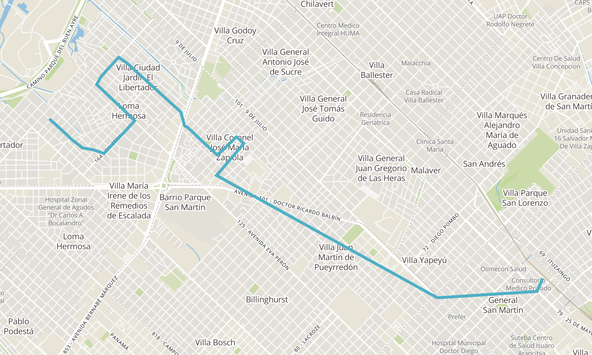 | SAN MARTÍN 7702-7800 | GRANADERO FCO. GONZÁLEZ 1902-1992 |