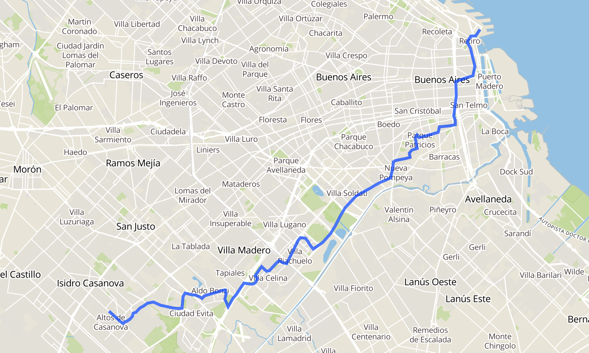 Sentido: Avenida Comodoro Py 2252 ‎→ AVENIDA CRISTIANÍA 4900-4998 (109 paradas)