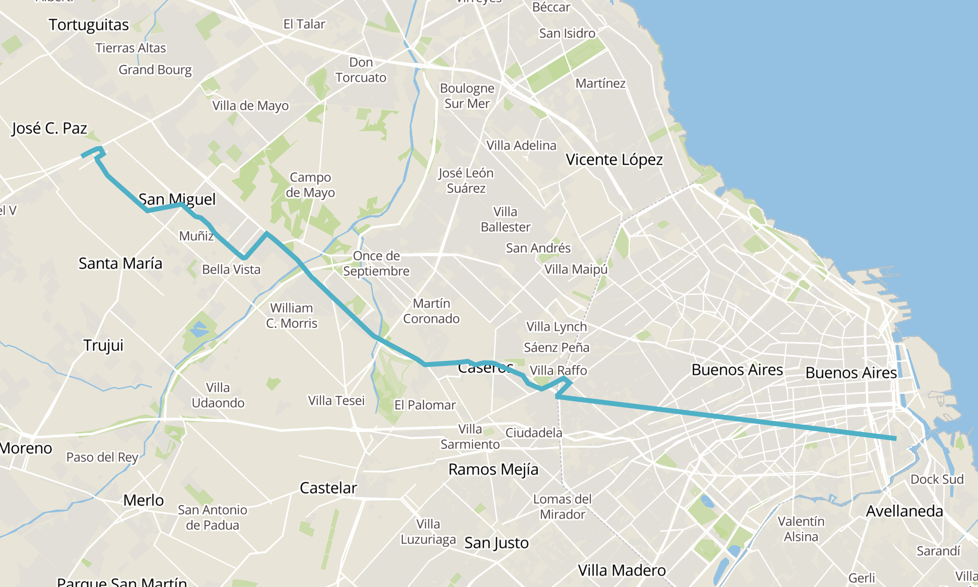Recorrido de la línea 53B: Rapido x Autop. San Miguel Constitución - VUELTA