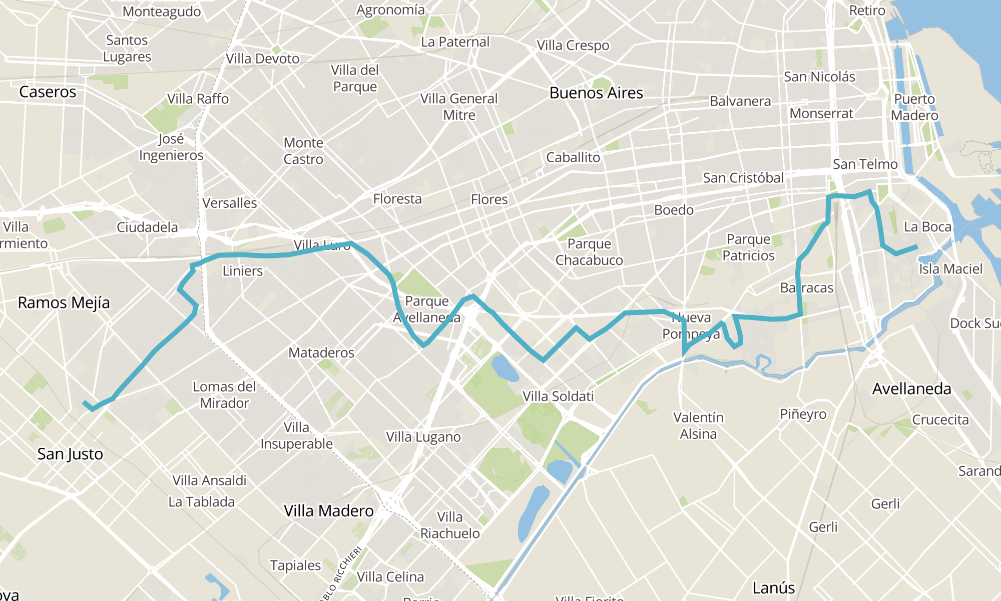 Recorrido de la línea 46B: a San Justo x Iriarte