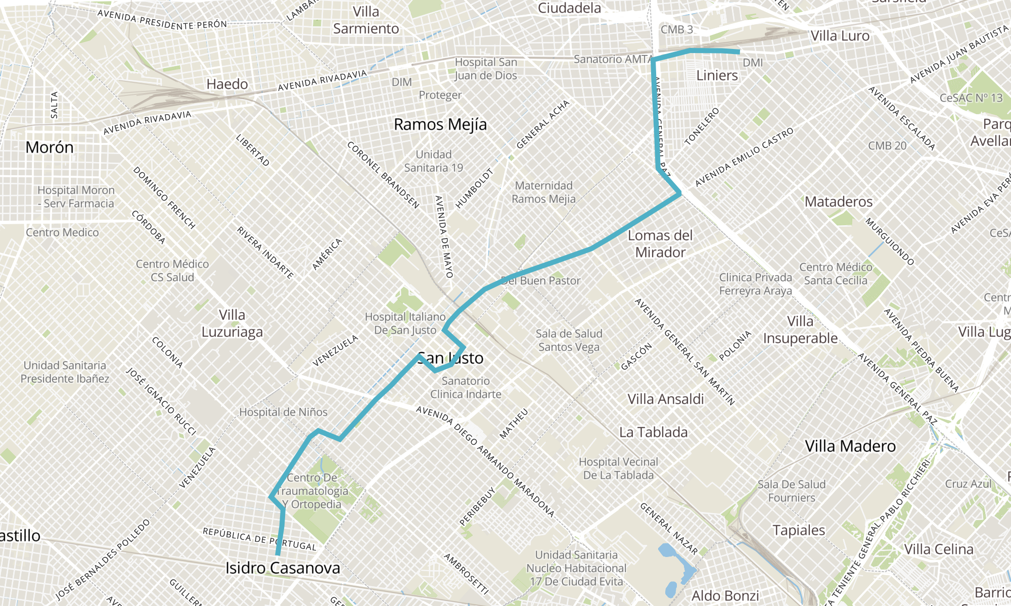 Recorrido de la línea 185C: C - Isidro Casanova