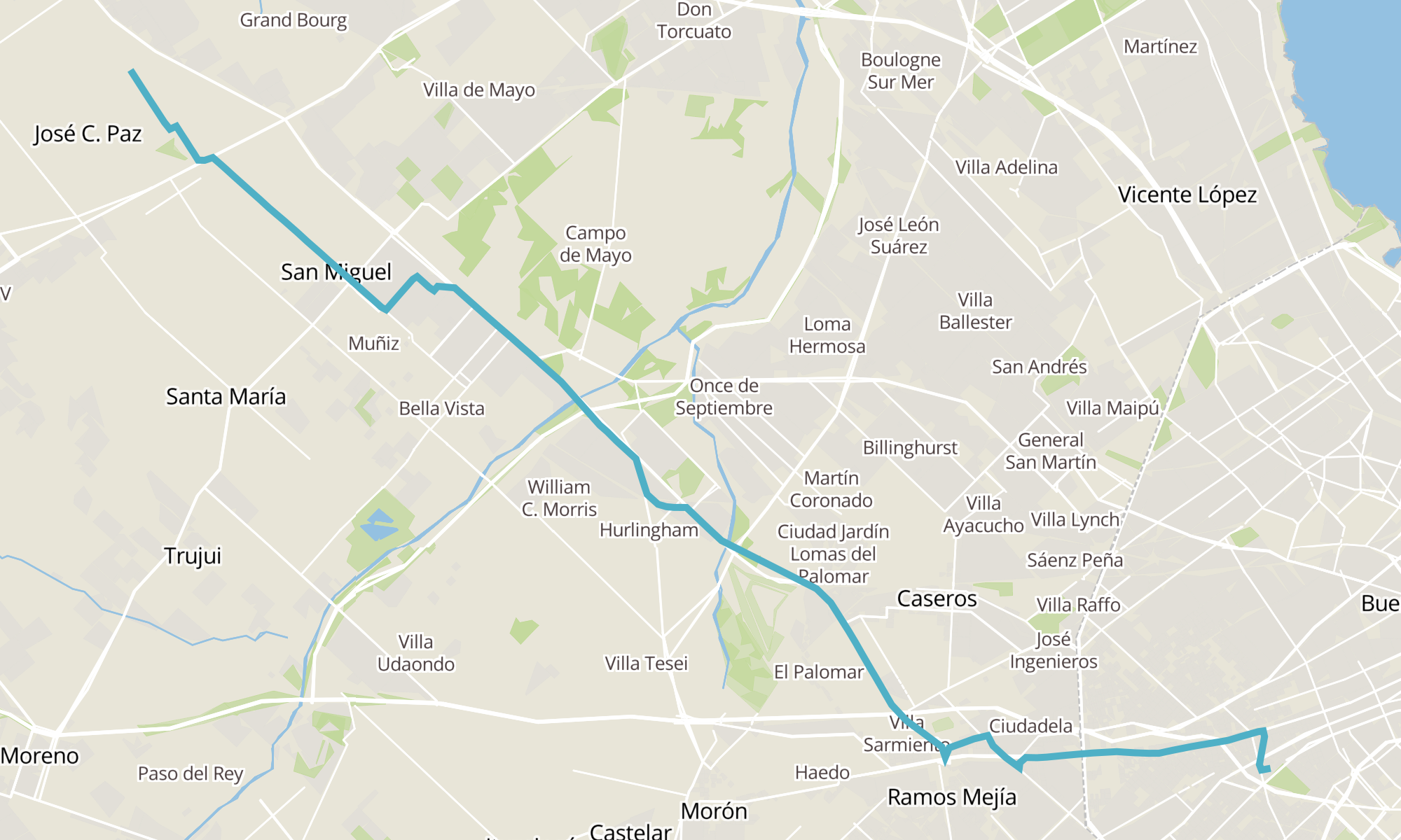 Recorrido de la línea 182B: 2 - José C. Paz x Guillermo Marconi