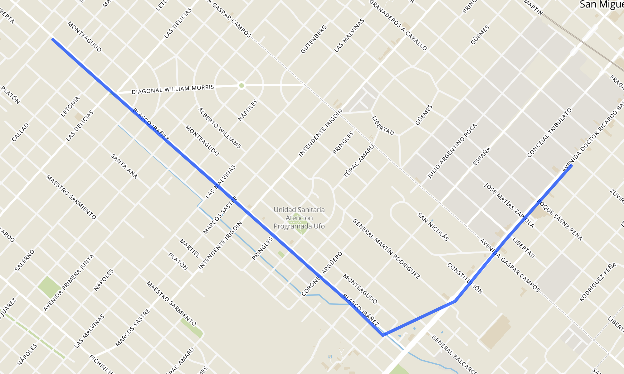 Recorrido de la línea 740G: Ramal 13 - VUELTA