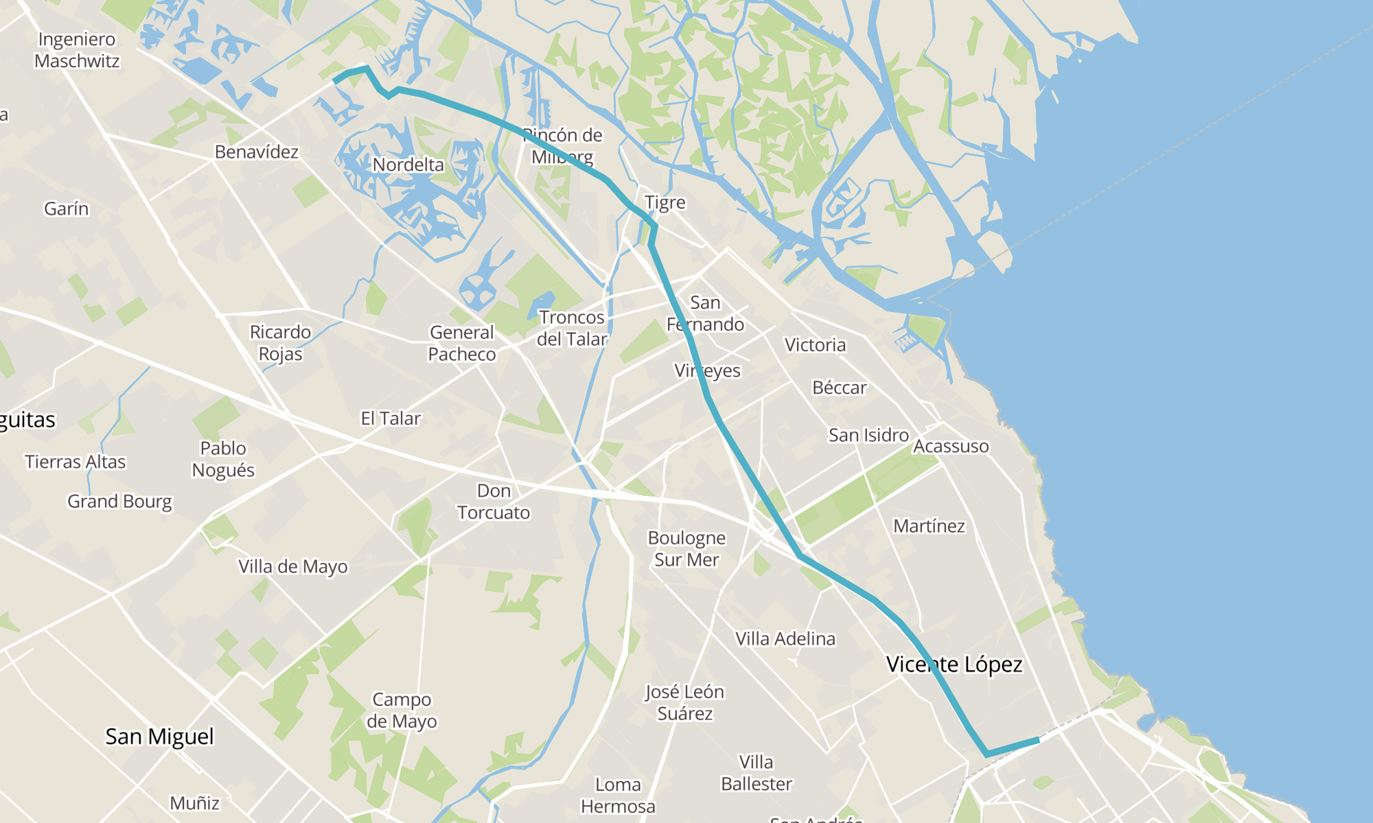 Sentido: JUAN ZUFRIATEGUI 1891 ‎→ AVENIDA BENAVIDEZ (52 paradas)