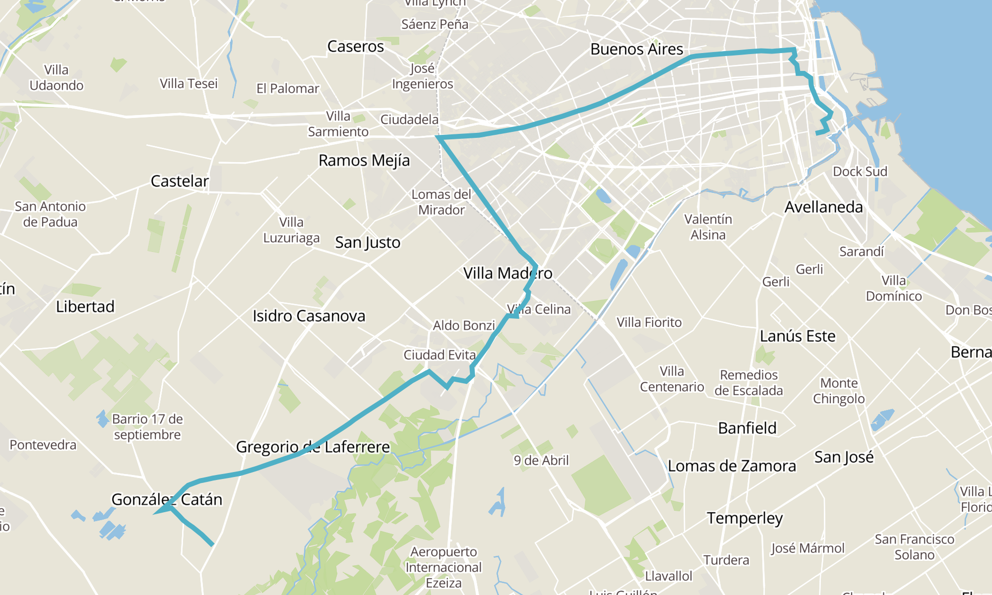 Recorrido de la línea 86A: a González Catán x Liniers y RP 21