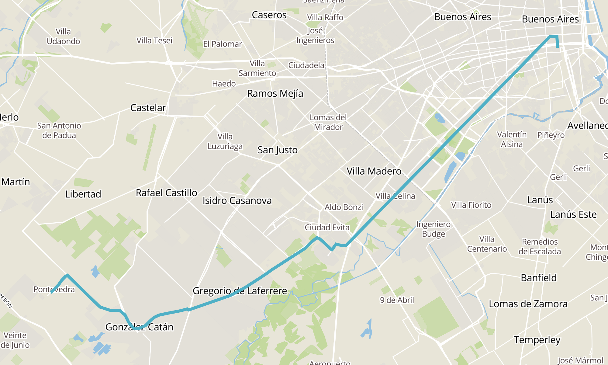 Recorrido de la línea 96AA: Expreso x Autop. - Pza. Constitución
