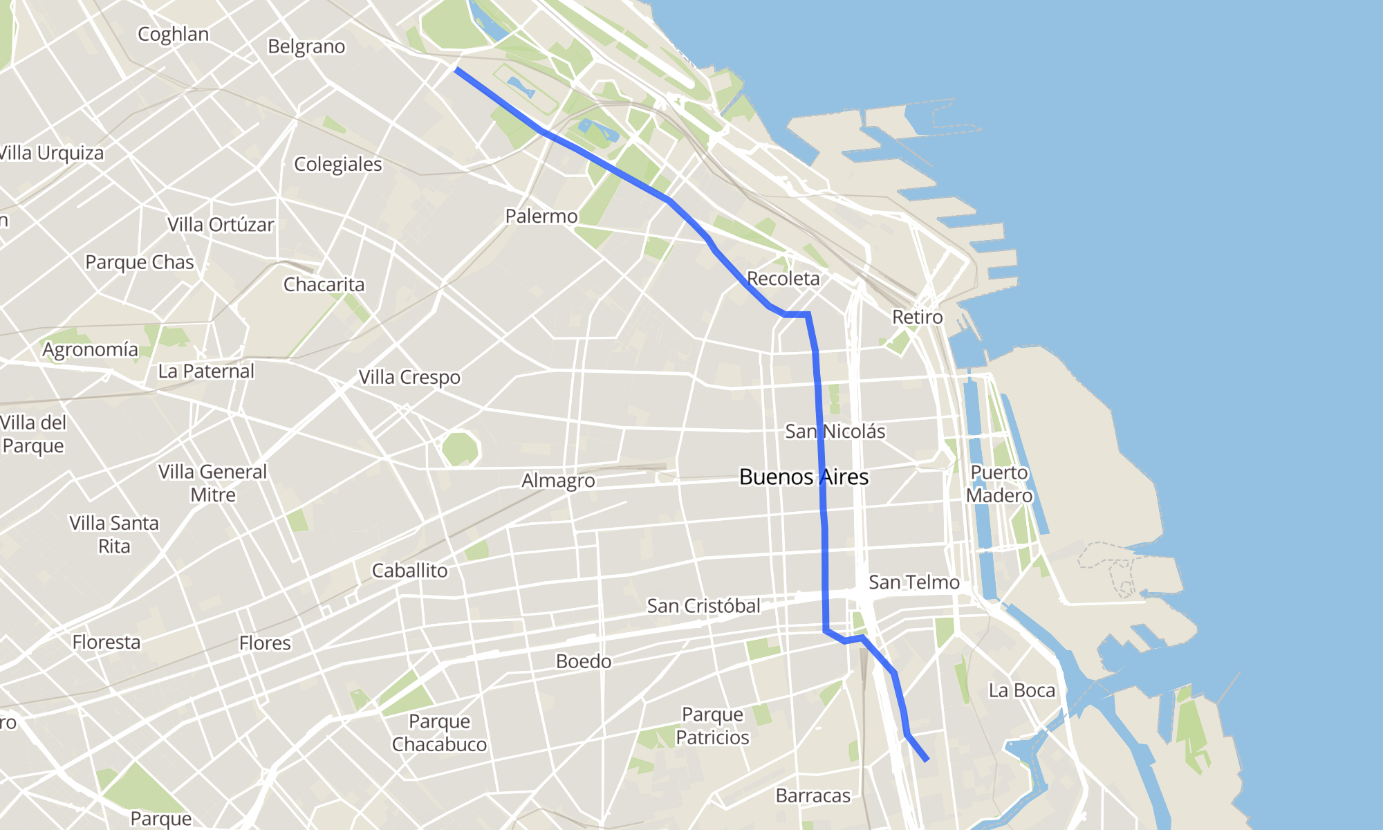 Recorrido de la línea 102: A: Lisandro de la Torre - Barracas