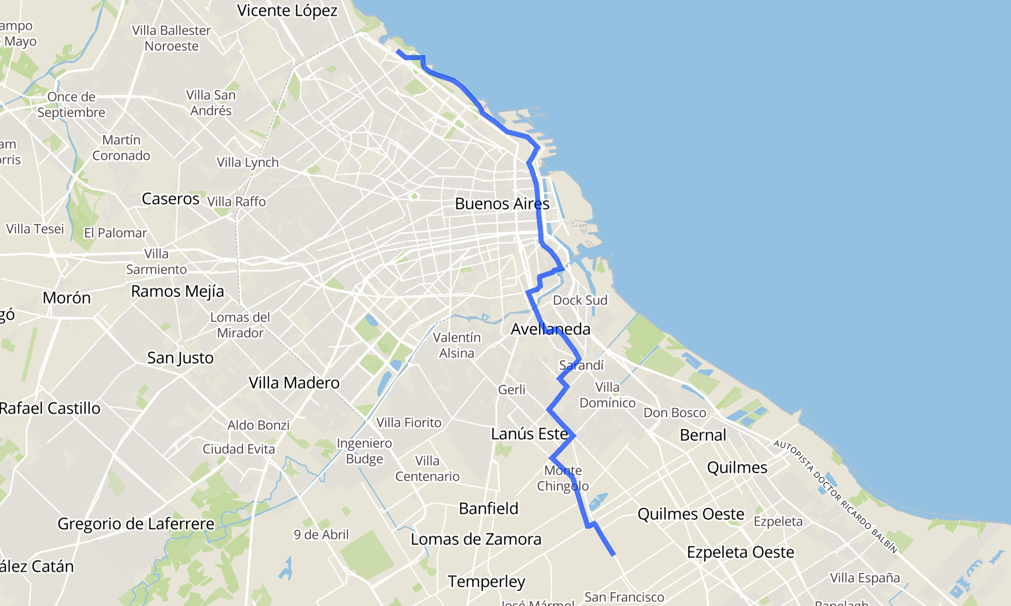 Recorrido de la línea 33A: M Cdad. Universitaria x Barracas