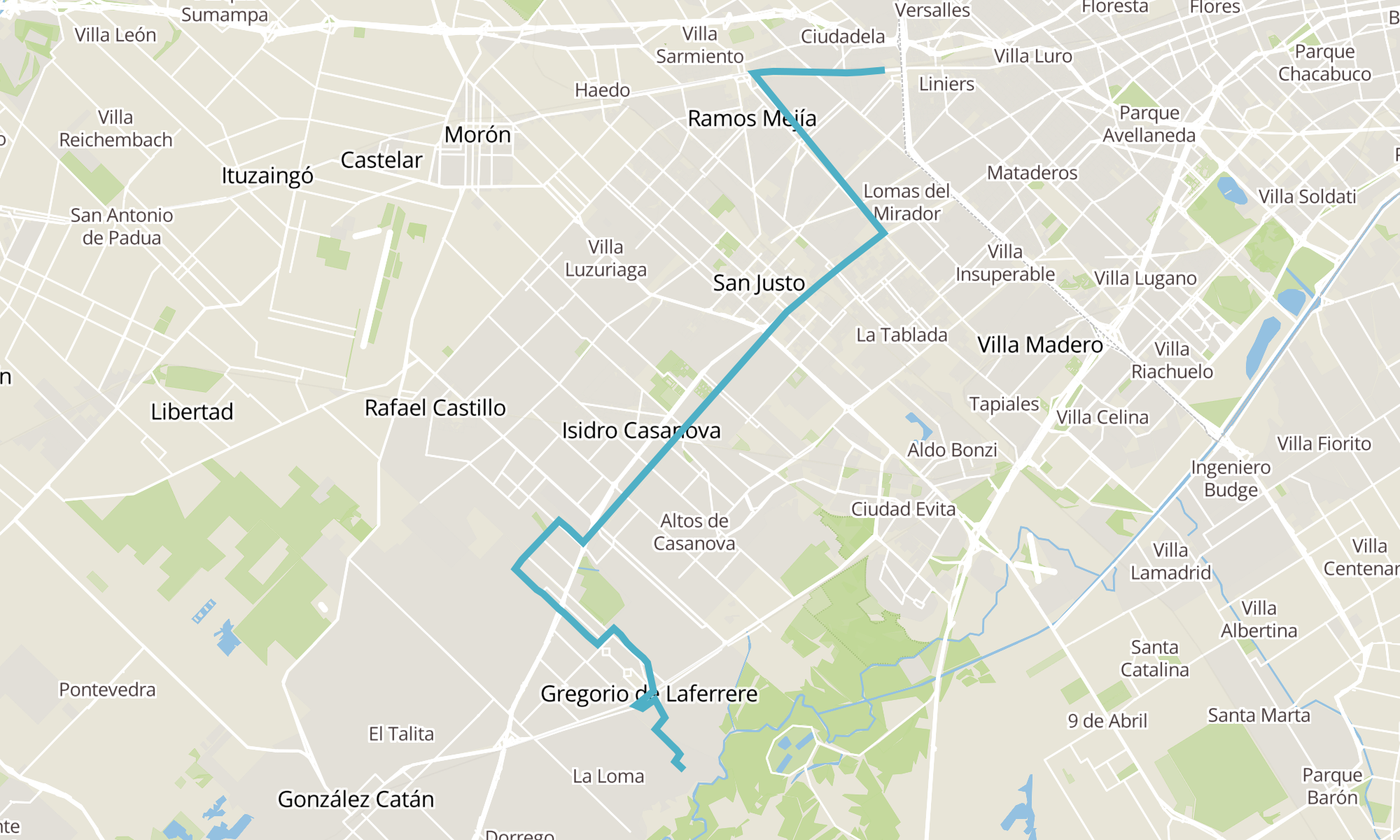 Sentido: AVENIDA RIVADAVIA 12026 ‎→ SAVIGNY 7850-7898 (68 paradas)