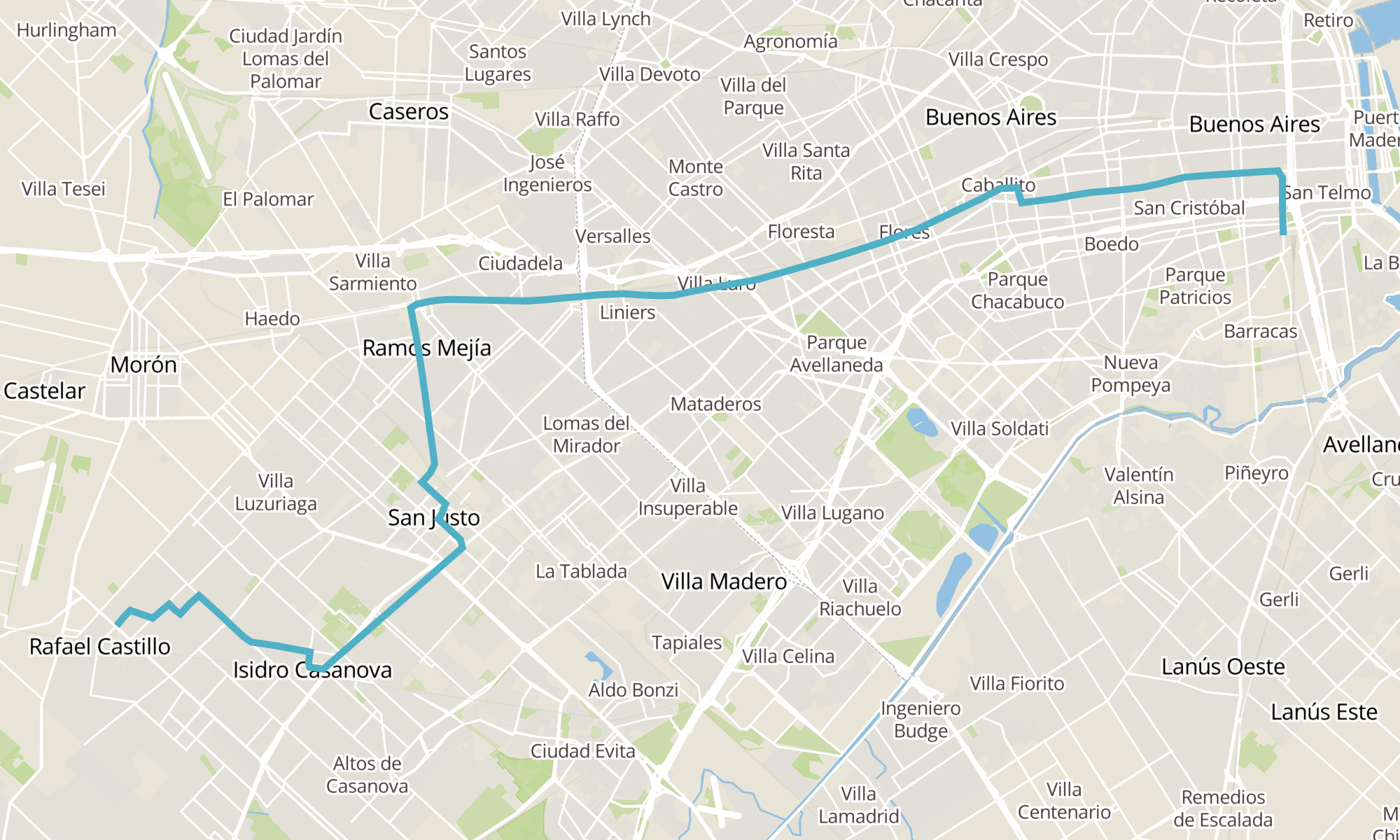 Recorrido de la línea 96C: a Est. Rafael Castillo