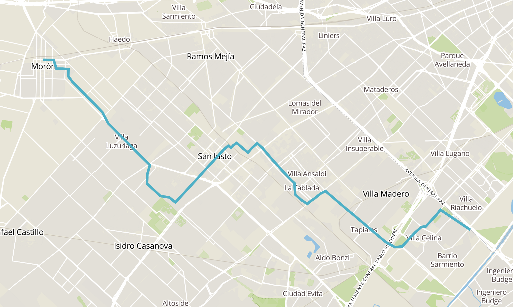 | Avenida General Paz Y Avenida Roca (28 B. Hernández - 101 - 114 - 145 - 298 - 306) | AVENIDA RIVADAVIA 18299-18399 |
