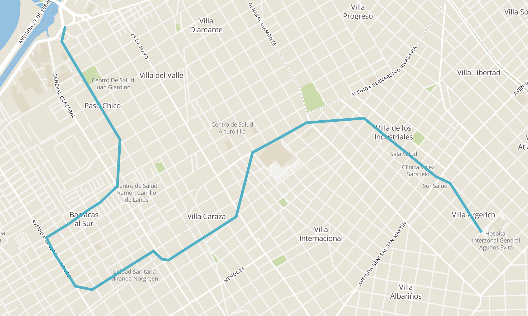 Recorrido de la línea 520BB2: Ramal B2 - VUELTA