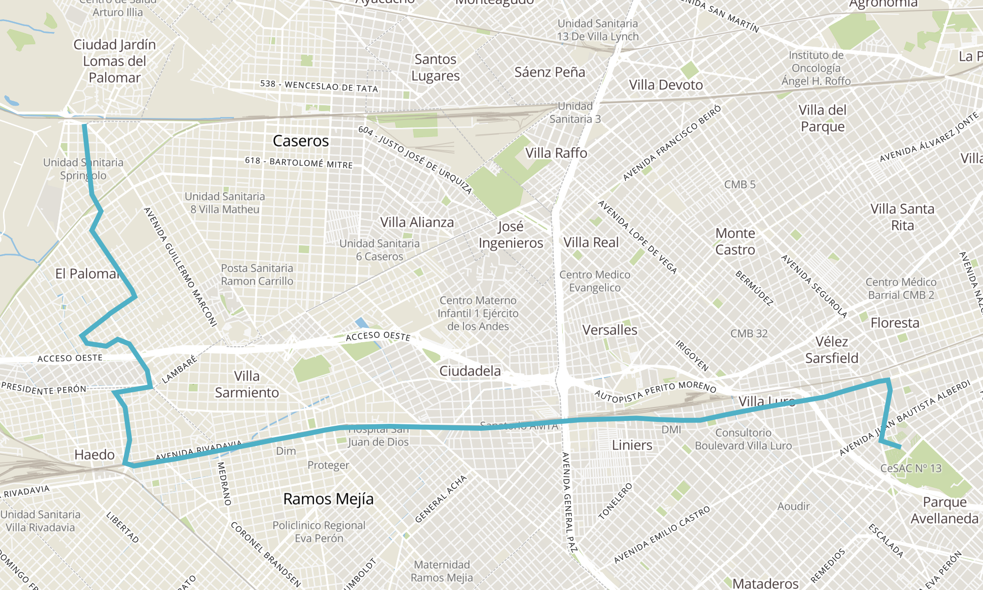 Recorrido de la línea 182D: 4 - Est. Palomar x Villa Basso