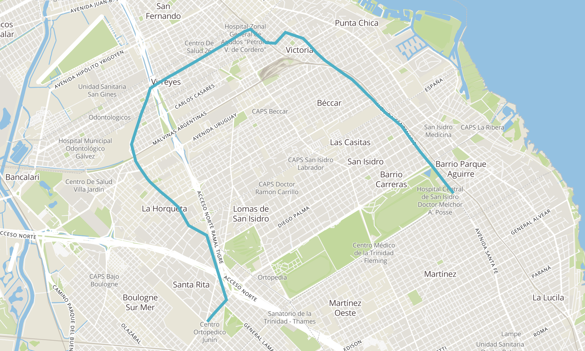 Sentido: AVENIDA AVELINO ROLÓN 1331 ‎→ AVENIDA SANTA FE 702-800 (57 paradas)