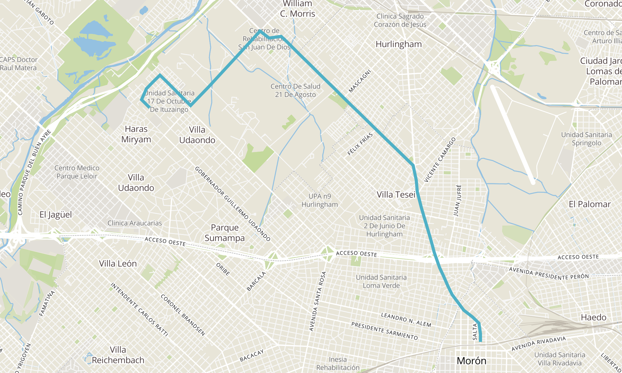Recorrido de la línea 461A: Ramal A - x Bonorino - VUELTA
