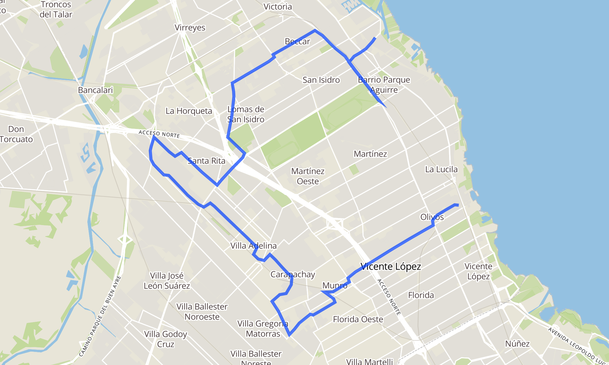 Recorrido de la línea 333: a S.Isidro - Htal. - Pto.