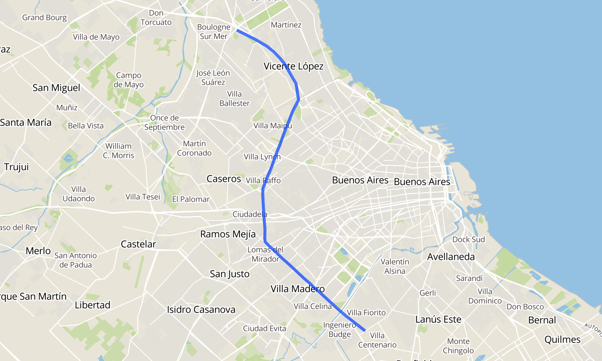 Recorrido de la línea 21K: a Liniers - Pte. La Noria