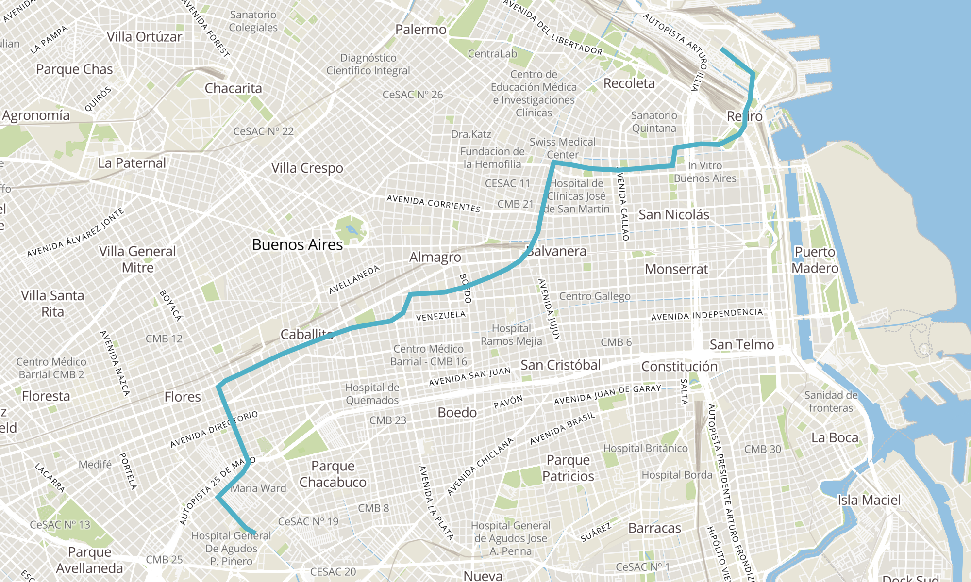 Horarios y paradas de la línea 132A: Recorrido a Retiro