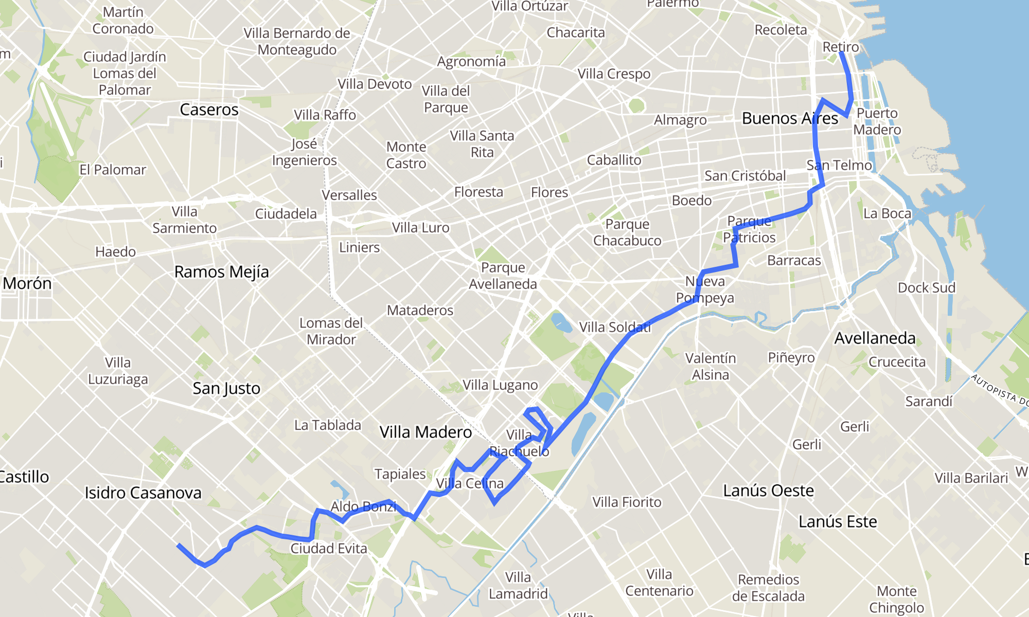 Sentido: AVENIDA CRISTIANÍA 4913 ‎→ 1245 SAN MARTIN (118 paradas)