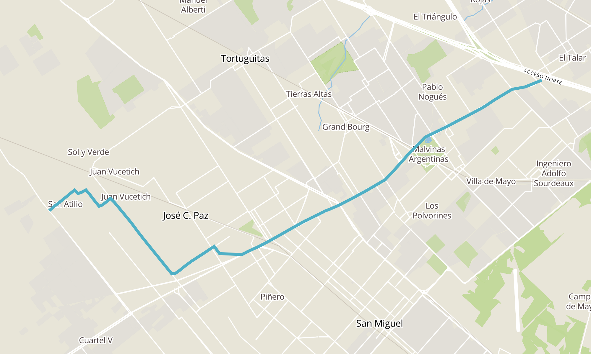 Recorrido de la línea 391C: Thames - B° San Atilio - VUELTA