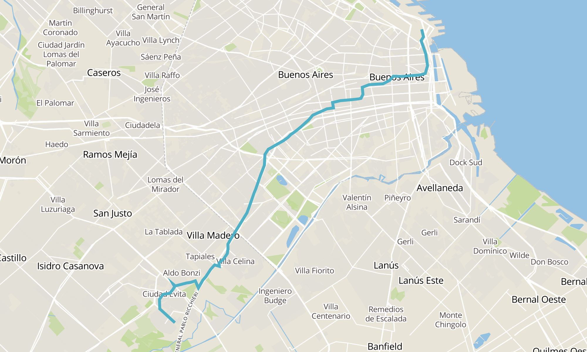 Recorrido de la línea 56C: a Cdad. Evita