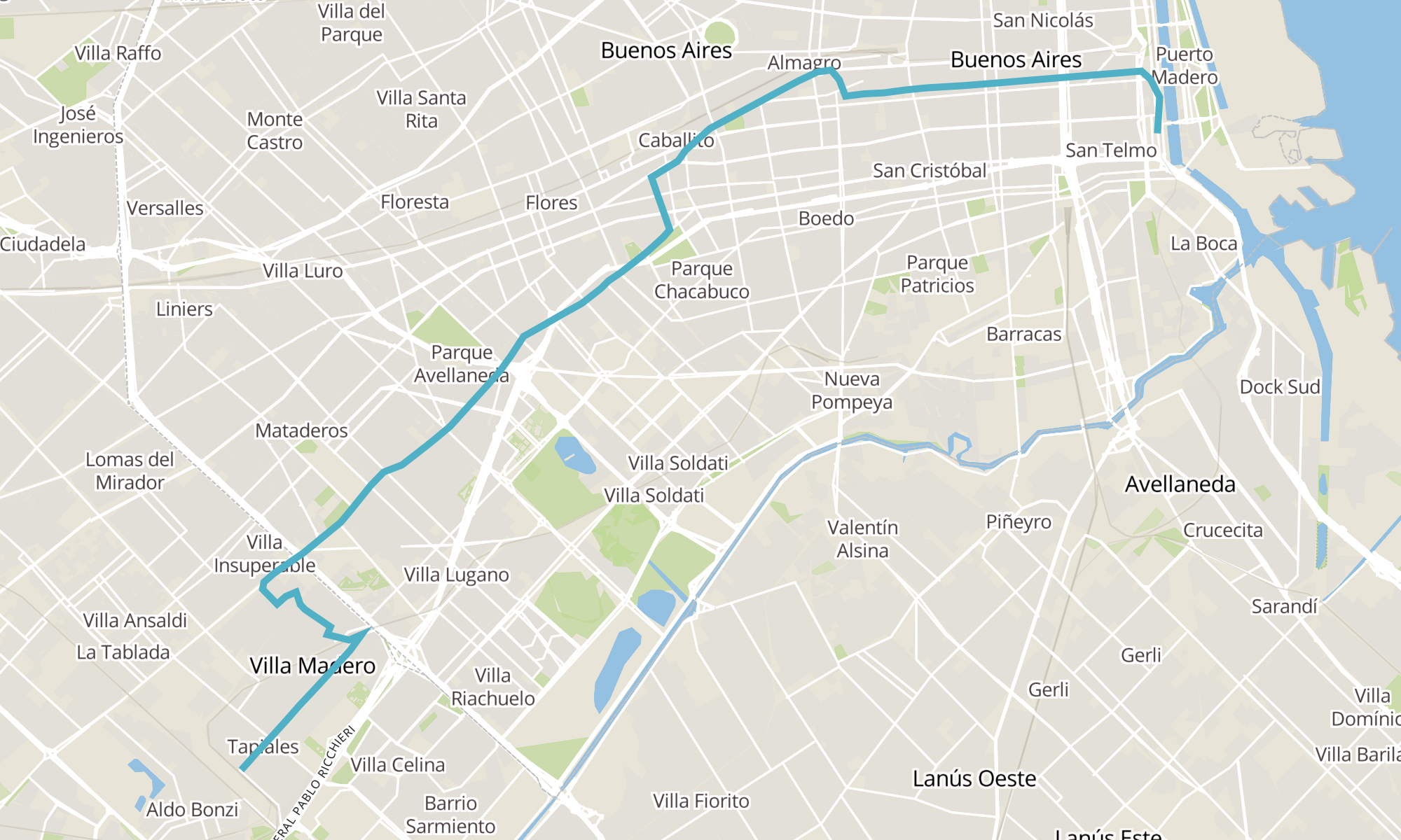 Recorrido de la línea 103A: Ramal A - Est. Tapiales