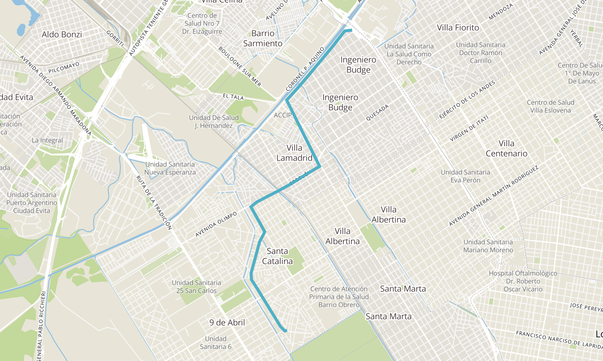 Recorrido de la línea 532A: Ramal A - VUELTA