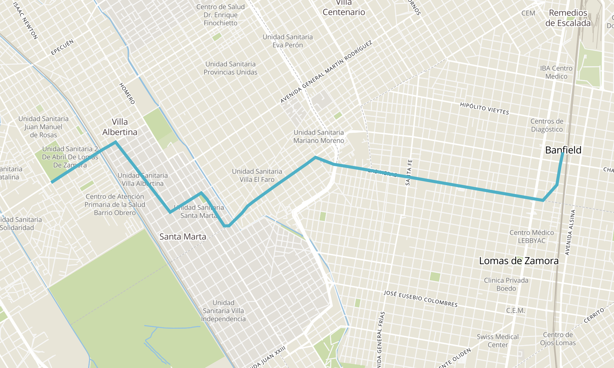 Sentido: GENERAL JUAN FACUNDO QUIROGA 1700-1738 ‎→ ANTONIO BERUTTI 2-100 (56 paradas)