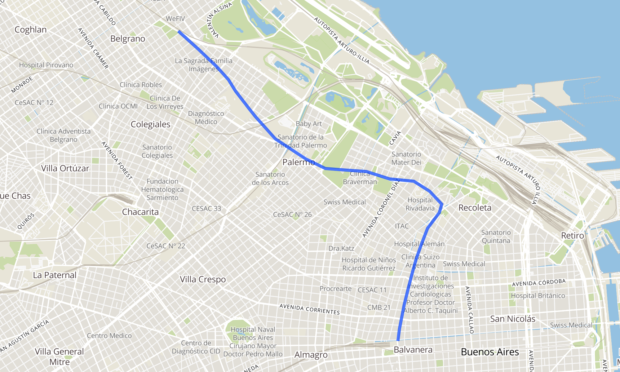 Recorrido de la línea 118: B - Barrancas de Belgrano