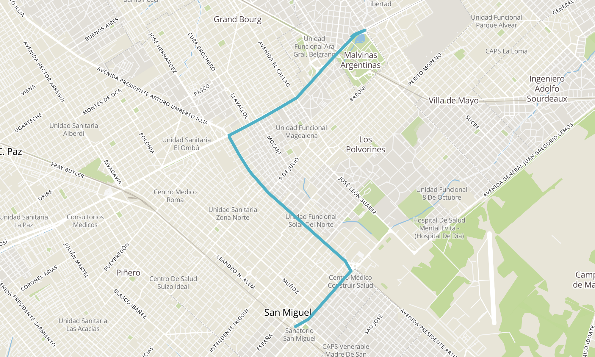 Recorrido de la línea 440-19: Ramal 19 - a San Miguel