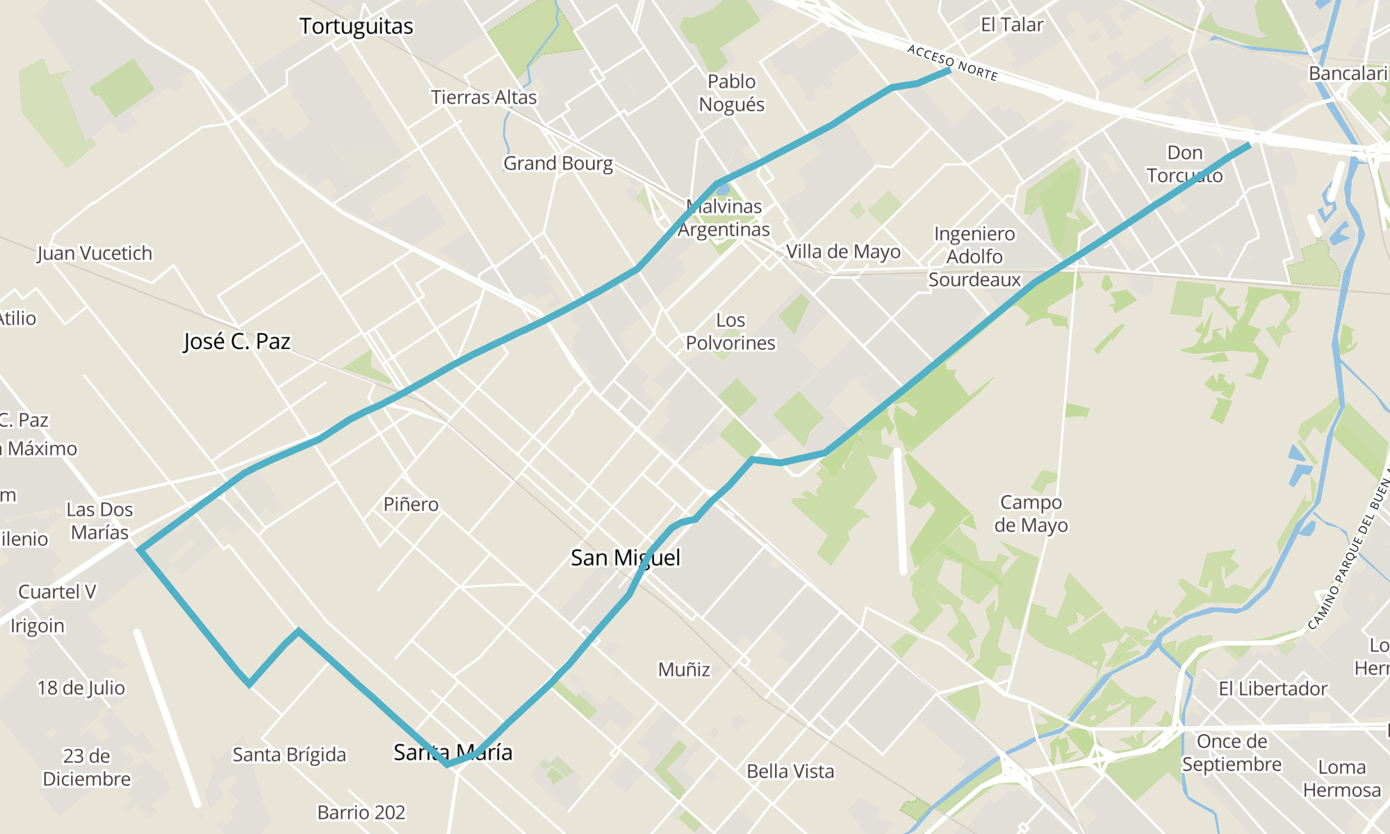 Recorrido de la línea 315A: a Panamericana y Ruta 202