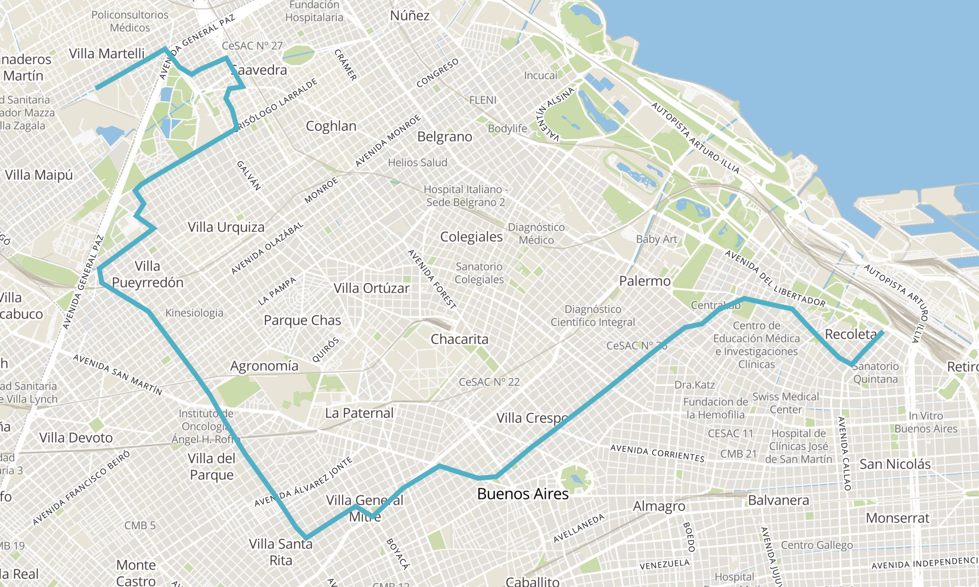 Recorrido de la línea 110A: a Fac. de Derecho x Nazca