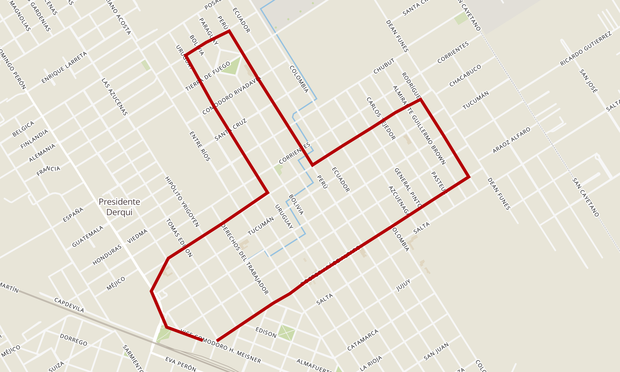 Recorrido de la línea 506: Est. Derqui - B° Monterrey (X Rivera Villate)