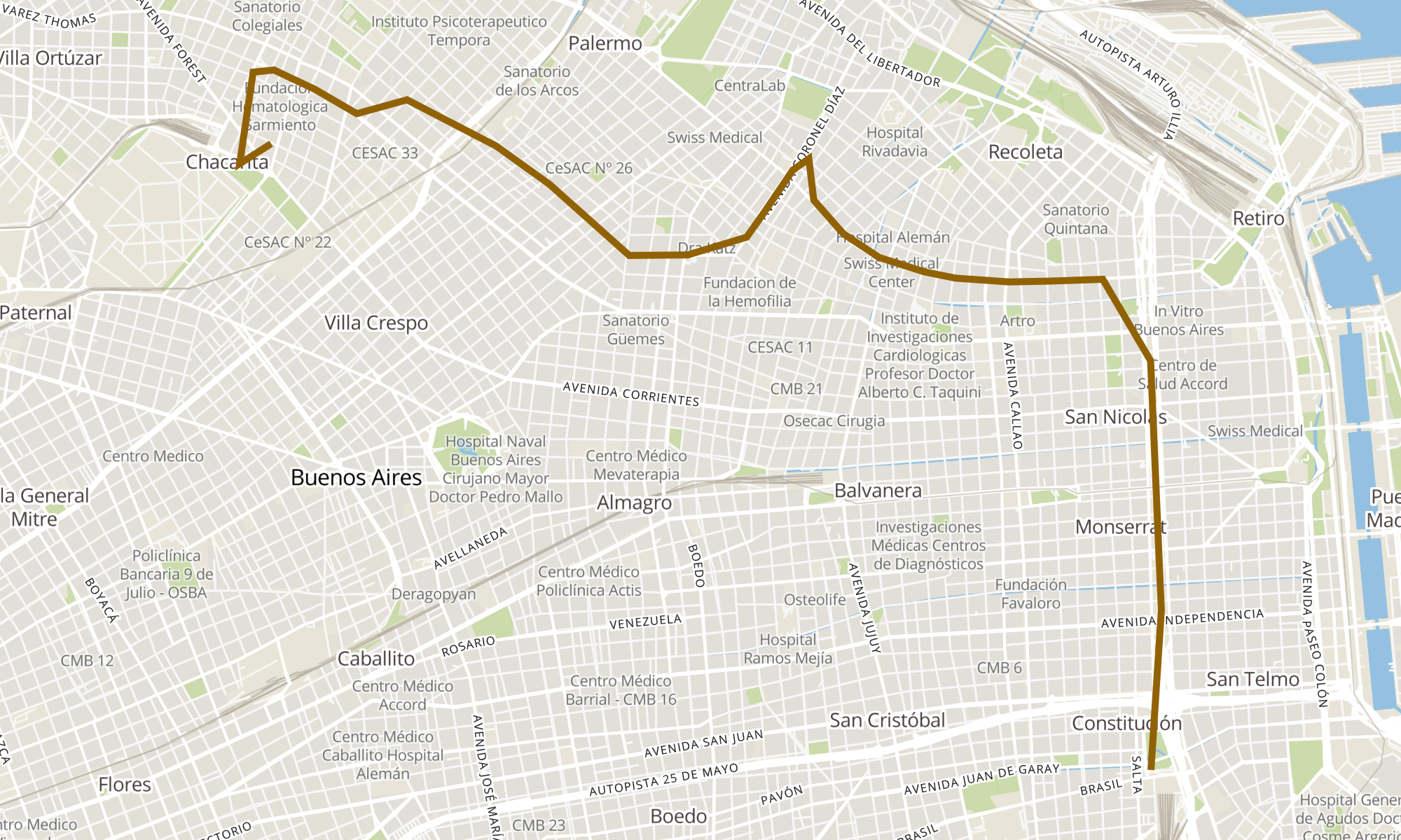 | Plaza Constitución (39) | Terminal 39 Chacarita (Ascenso) |