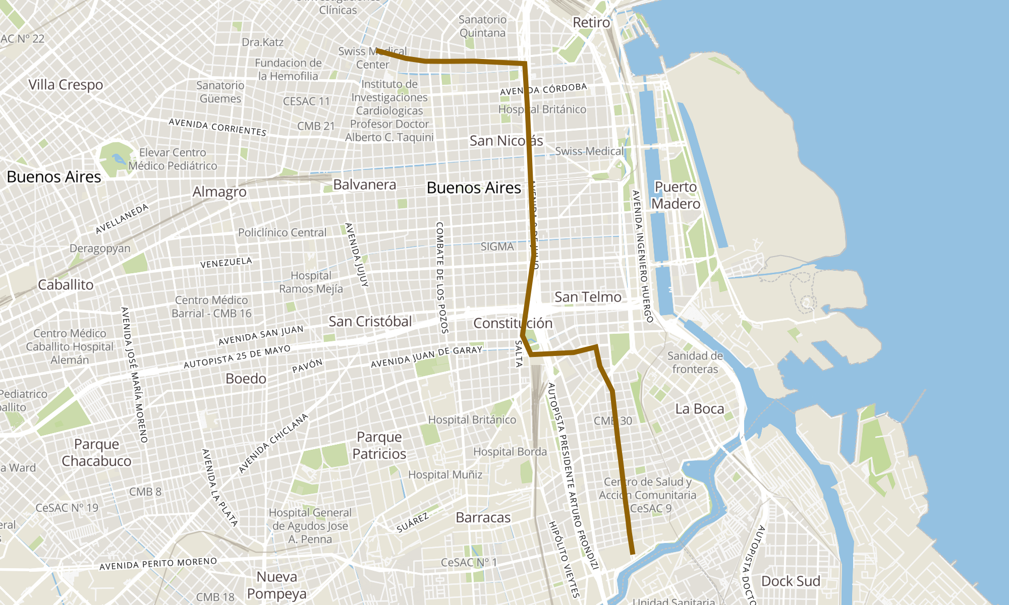 Recorrido de la línea 39: G: Barracas