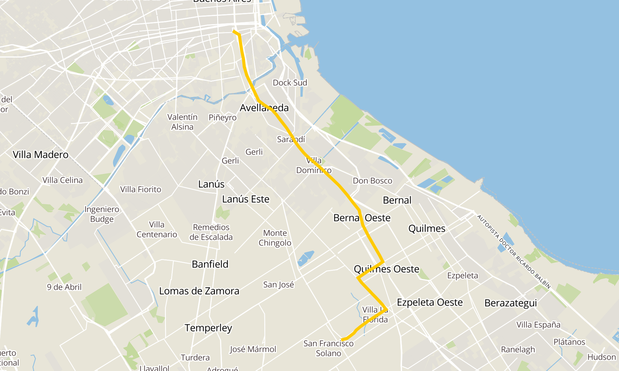 Sentido: Estación Solano (148 E - 148 F) ‎→ Plaza Constitución (148 Descenso) (72 paradas)