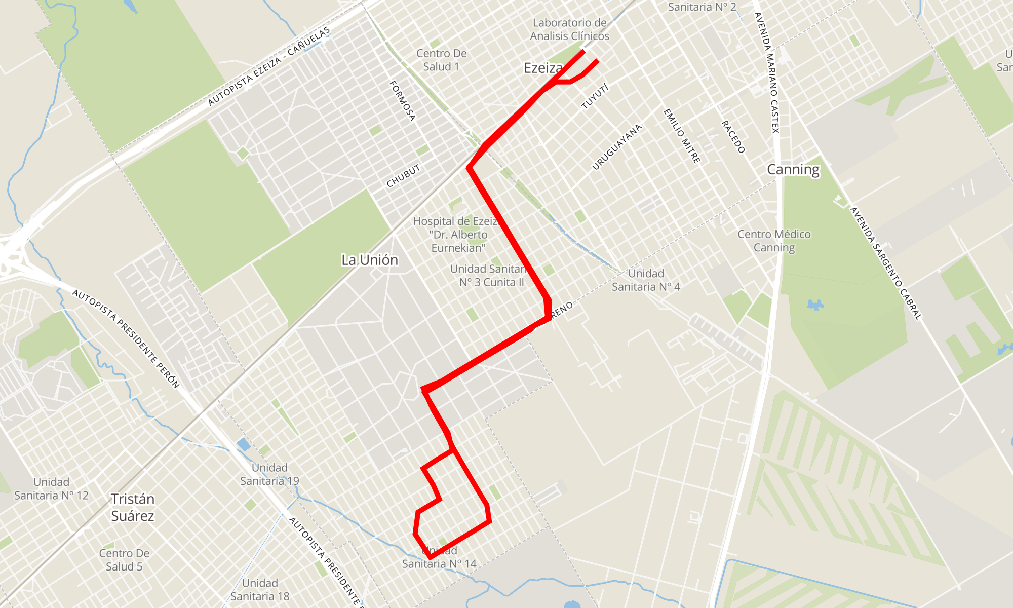 Recorrido de la línea 518: Est. Ezeiza - Bº Sol De Oro (Santa Ángela)