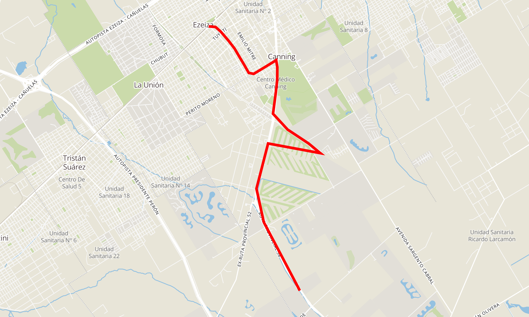 Recorrido de la línea 518: Est. Ezeiza - El Principado (Por Dupuy)