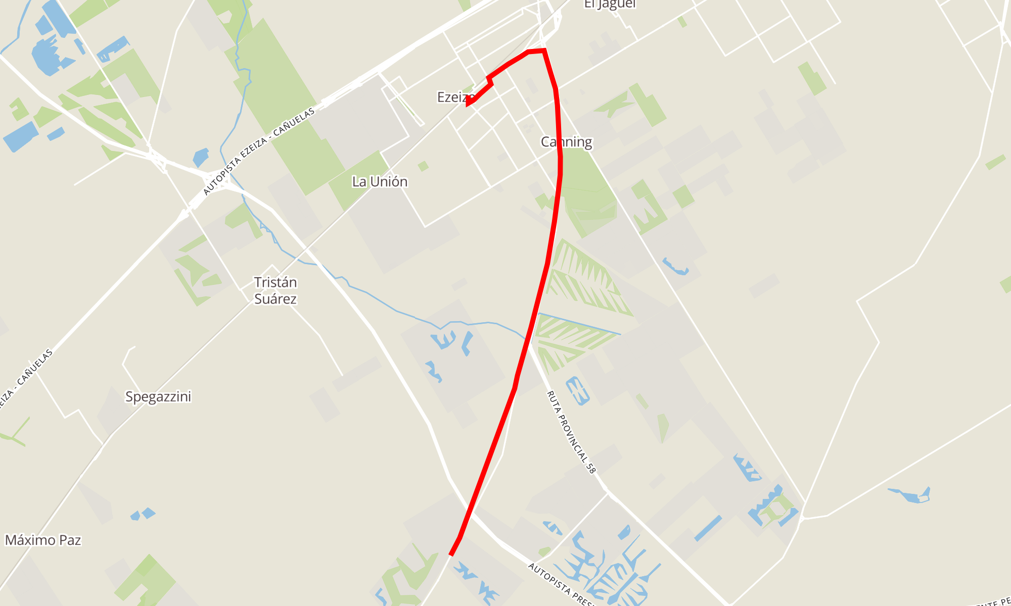 Recorrido de la línea 518: Est. Ezeiza - Providencia (Por Ruta 52)