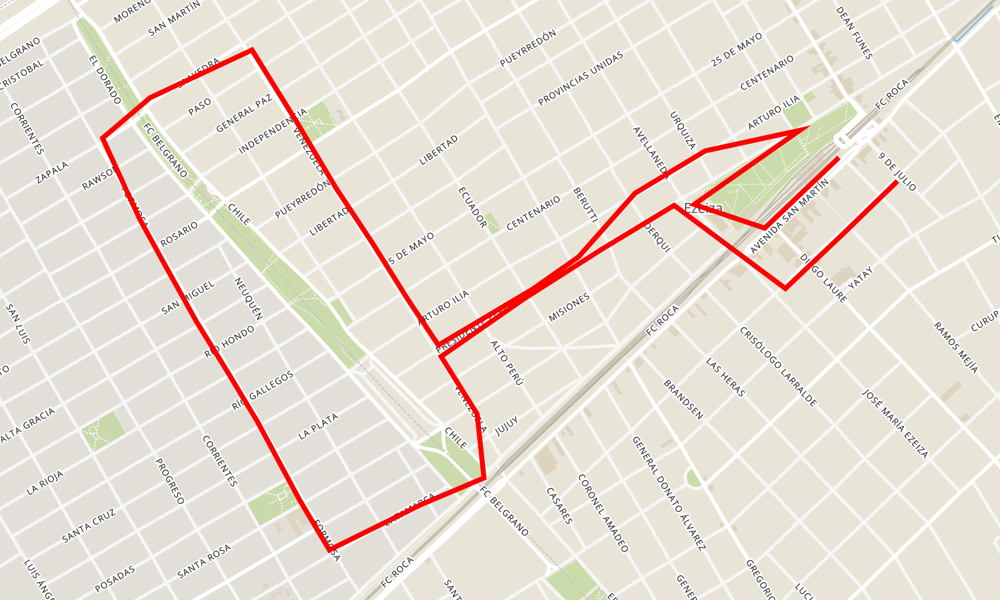 Recorrido de la línea 518: Est. Ezeiza - Villa Golf - Est. Ezeiza