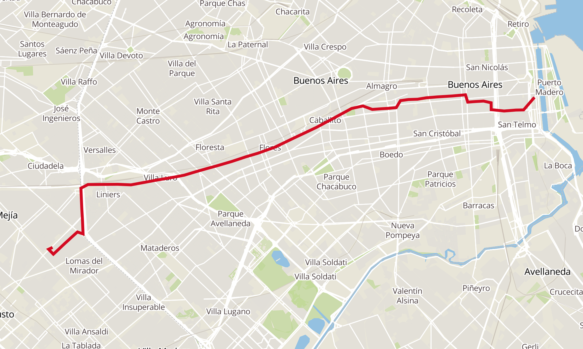 Sentido: Venezuela Y Azopardo ‎→ Terminal Línea 2 (58 paradas)