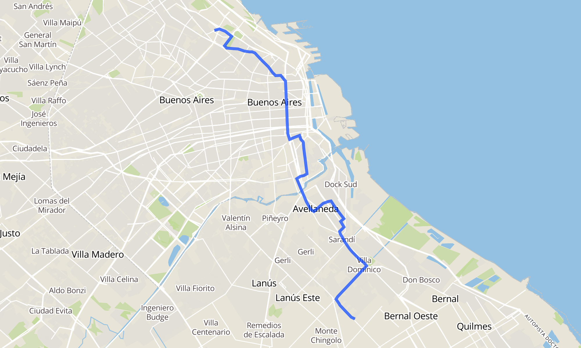 | Campo Argentino De Polo / Estación 3 De Febrero (10) | Fabián Onsari Y Camacuá (Terminal Línea 17) |