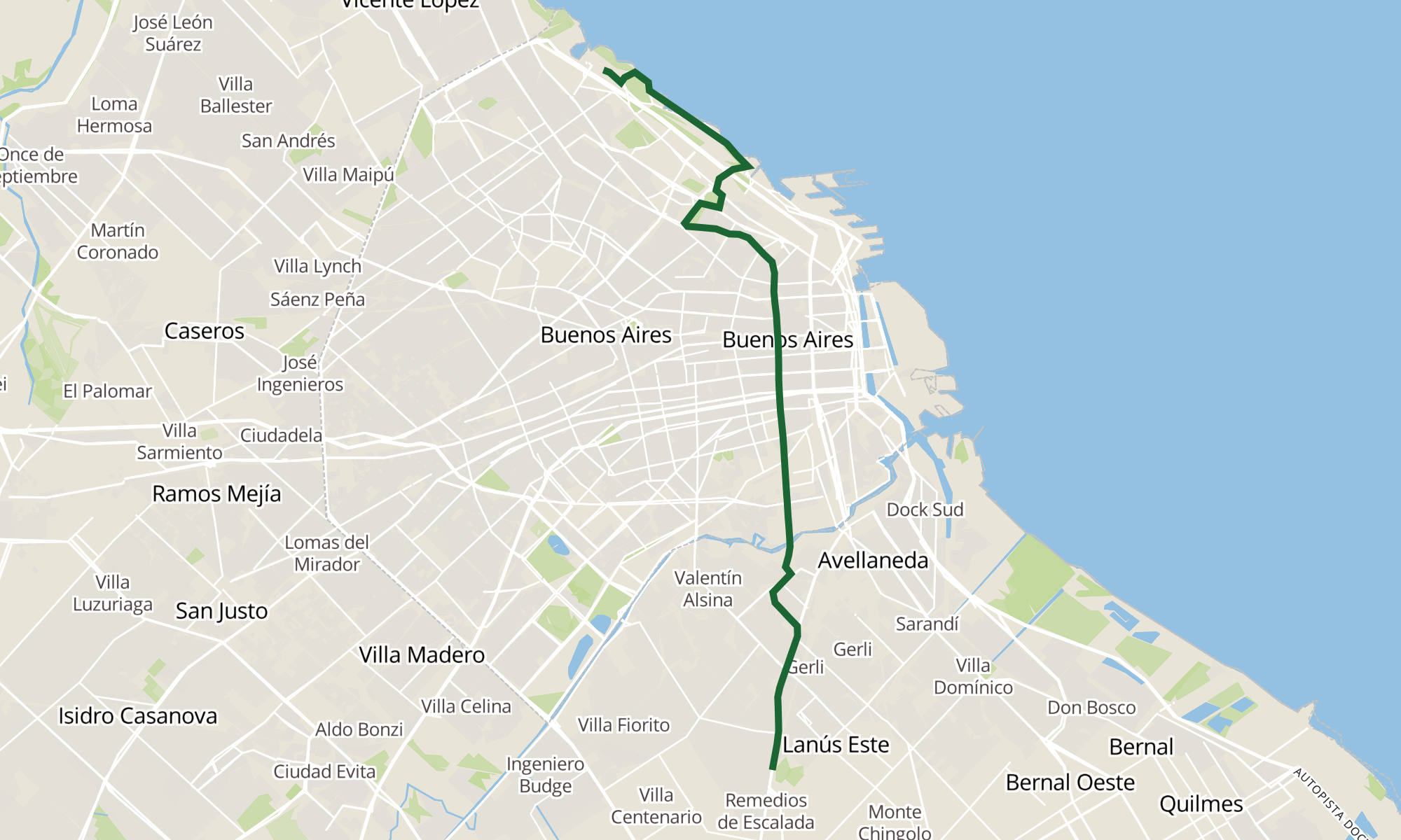 Recorrido de la línea 37: Lanús - Ciudad Universitaria (X Costanera)