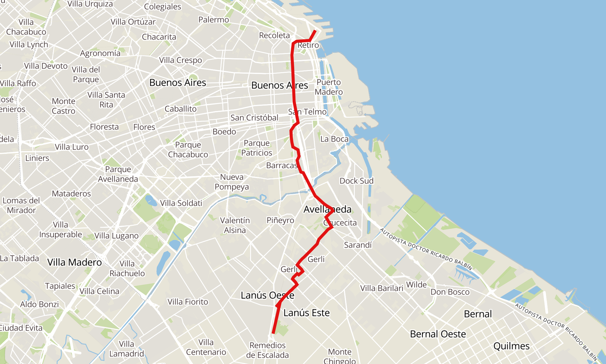 Recorrido de la línea 100: A: Retiro x Güemes (Ramal 1)