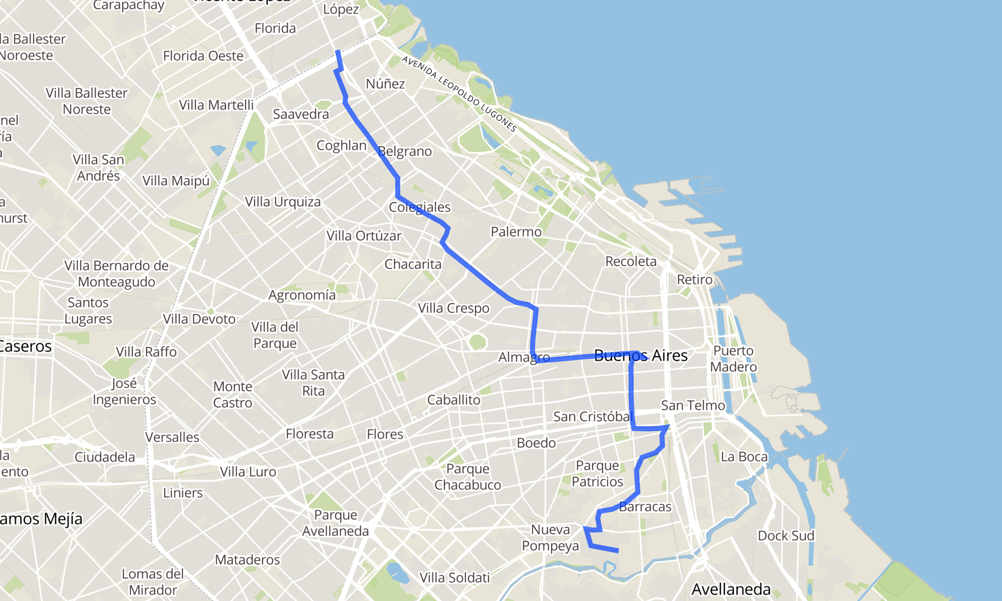 | Luna Y Avenida Osvaldo Cruz | Centro De Trasbordo Pte. Saavedra (Llegadas) |