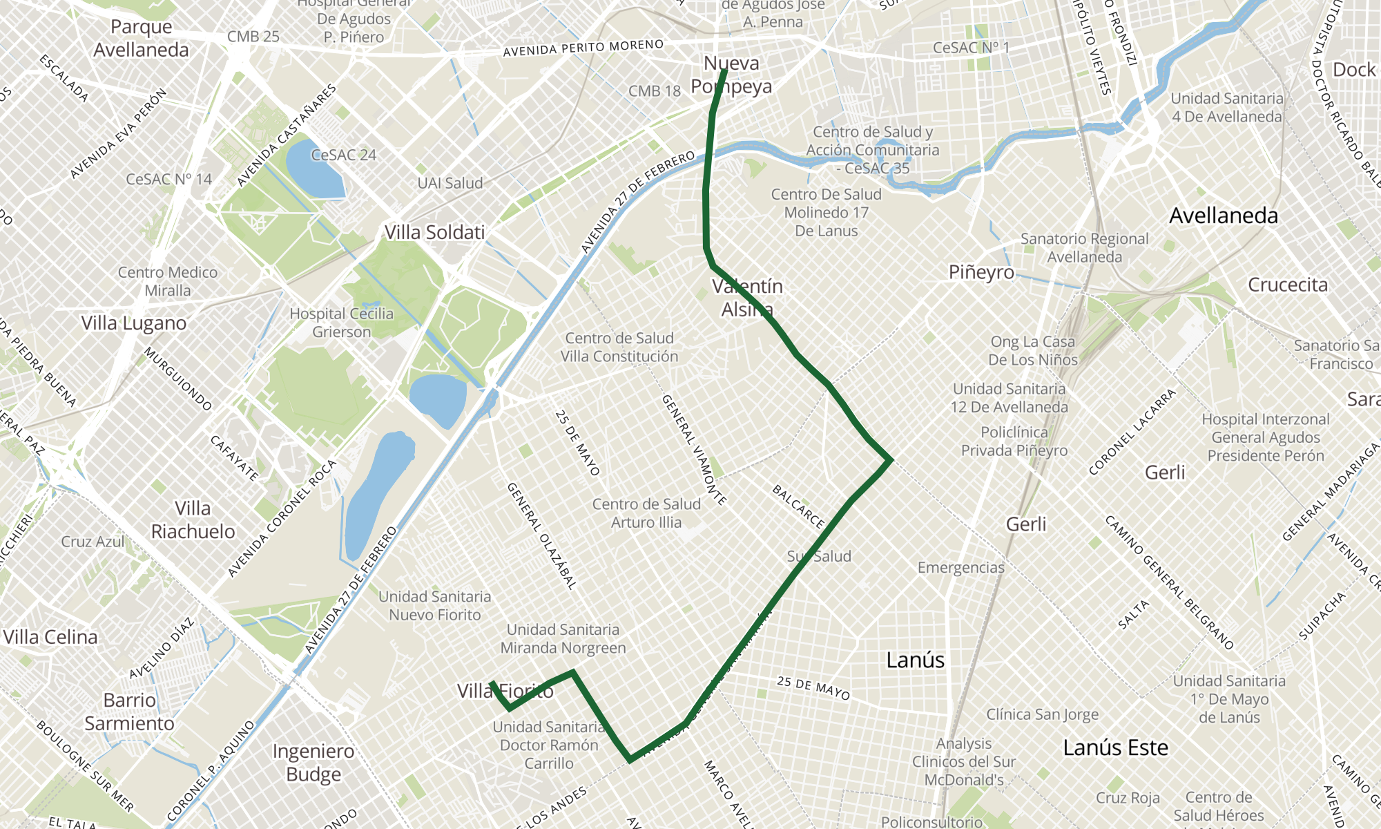 Sentido: Romero, 414 ‎→ José Luis Murature Y Pilcomayo (38 paradas)