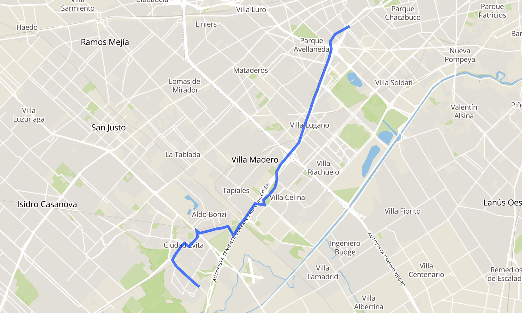 | Plaza De Los Virreyes (56 - 97) | Rotonda Ciudad Evita (8 Ezeiza - 56 - 86 - 621 Ramos Mejía) |