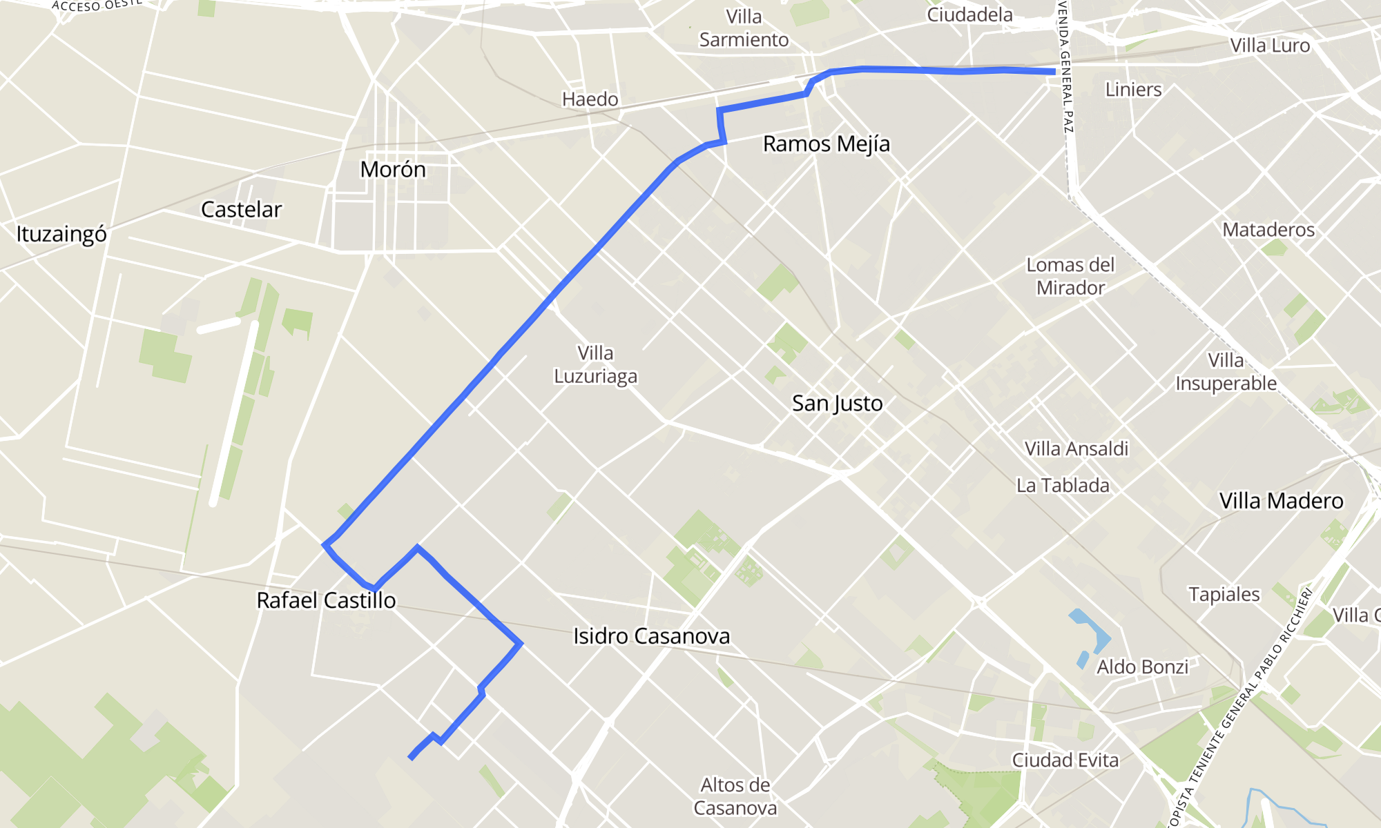 Sentido: Terminal La Cabaña (242) ‎→ Pedro Ferré Y Vernet (85 paradas)