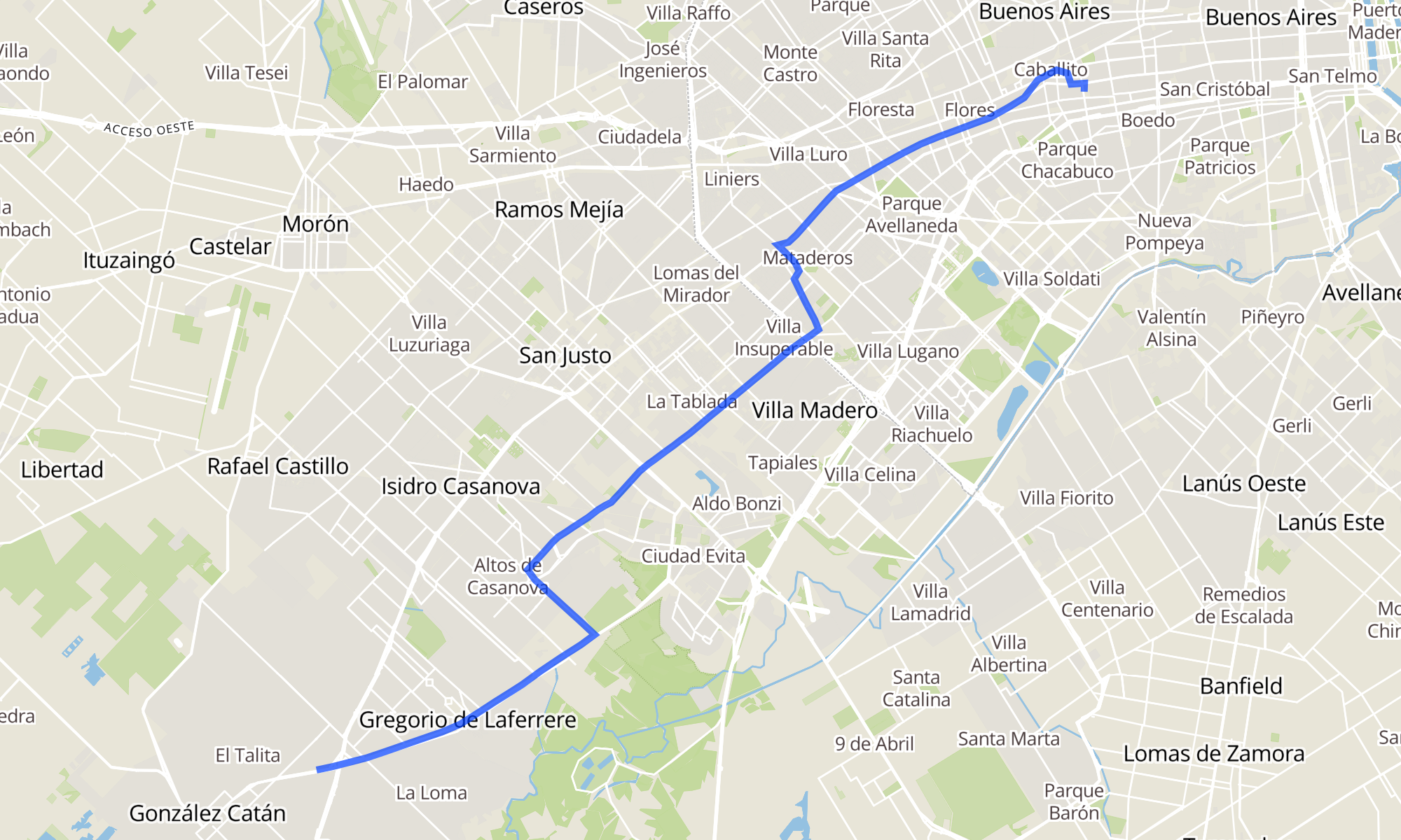 | Avenida José María Moreno Y Valle (25 - 180) | Terminal 180 - 630 González Catán (Descenso) |