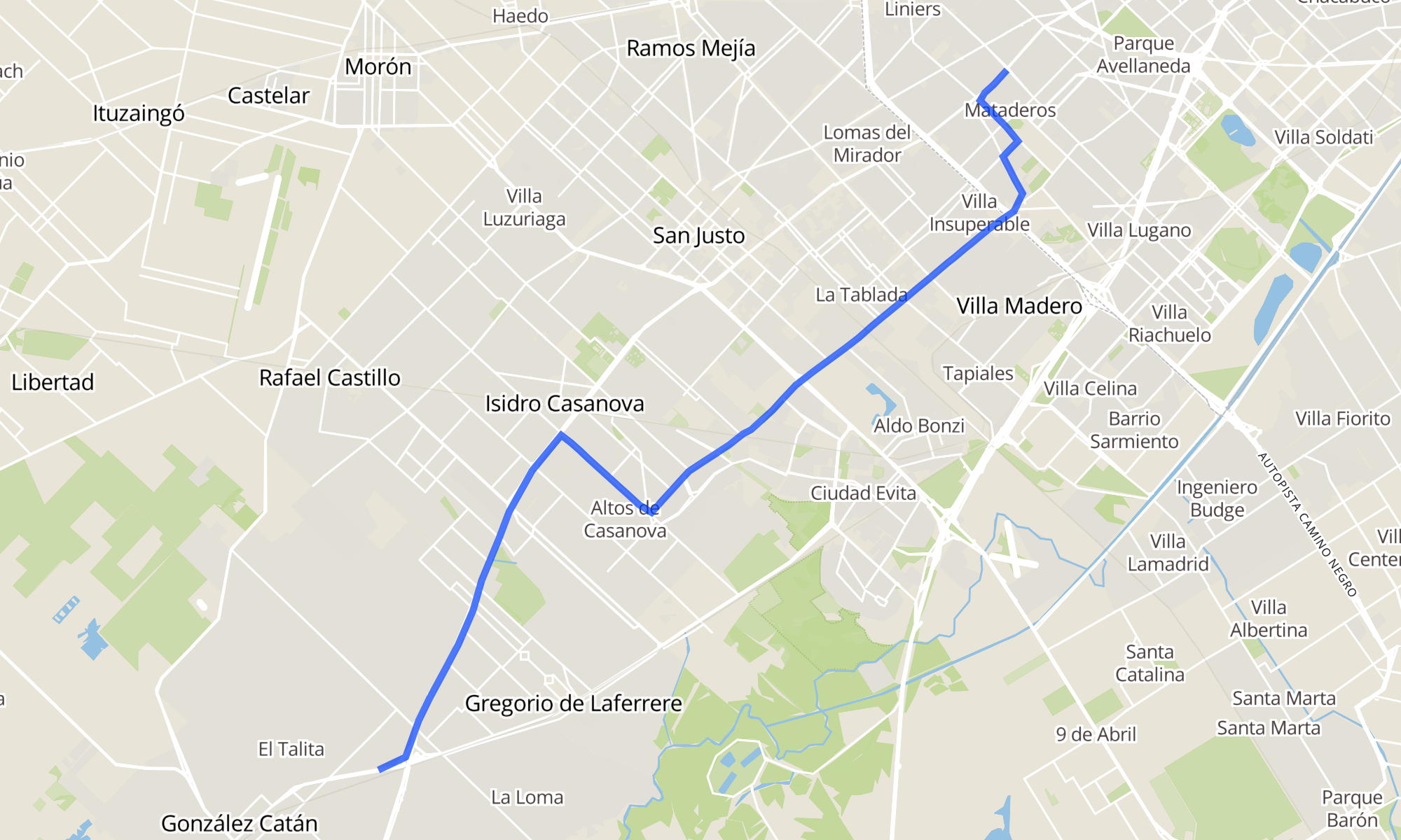 | Terminal 180 - 630 González Catán (Ascenso) | Avenida Alberdi Y Avenida Larrazábal (88 - 180) |